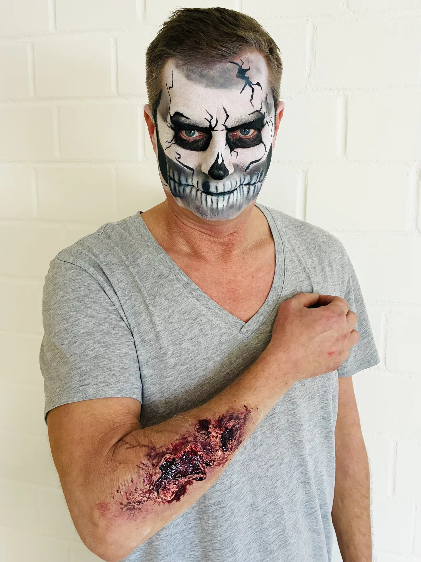 Zombie Look für Halloween. Visagistin für Totenkopf MakeUp.